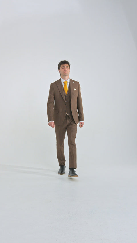 James Men's 3-Piece Plain Brown Suit with Classic Fit