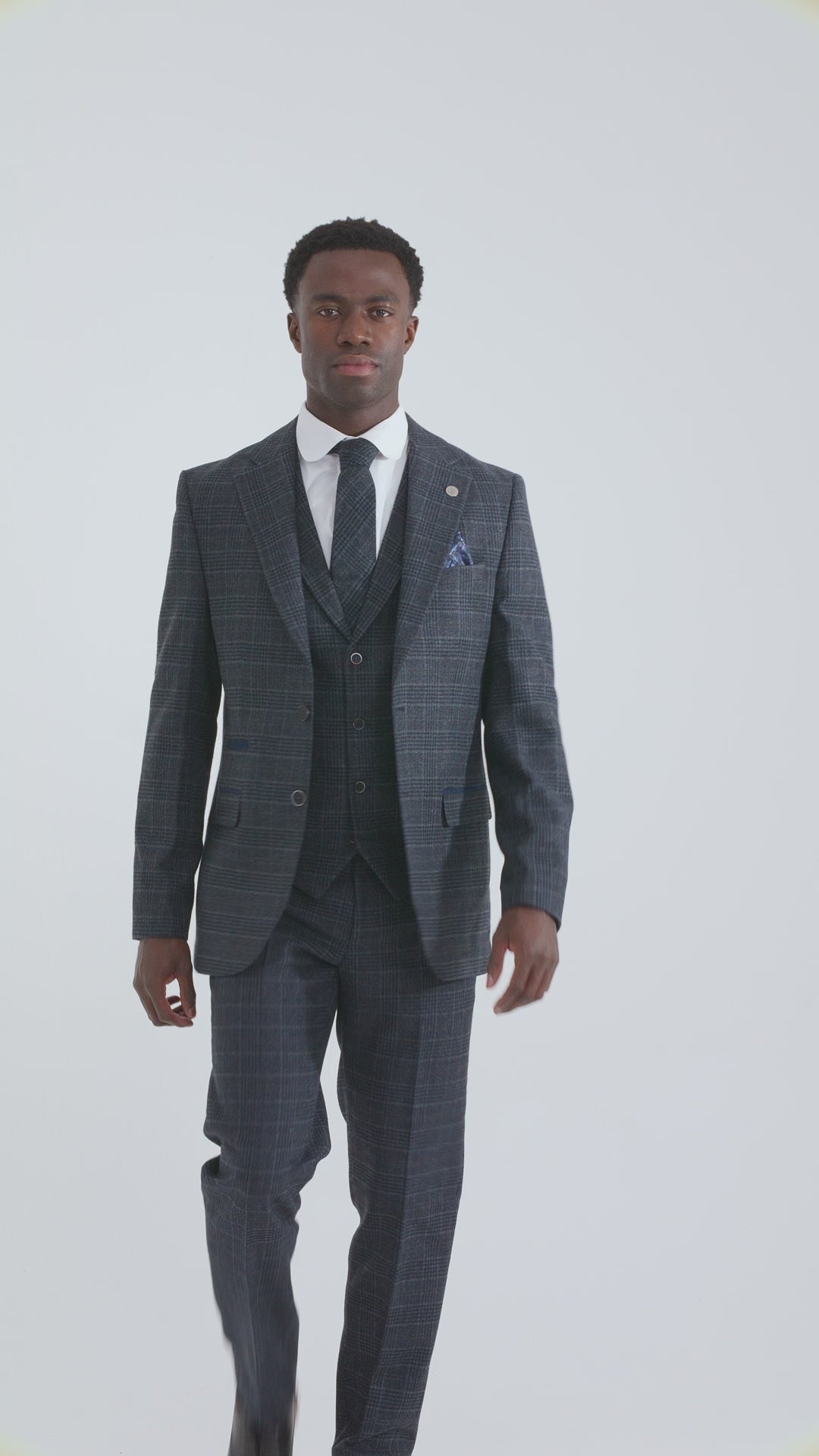 Men's Blue Tartan Check 3 Piece Suit